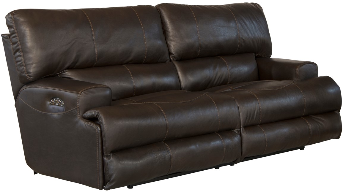 The Wembley Chocolate Power Headrest Power Lay Flat Reclining Sofa features Lay Flat reclining comfort with decorative luggage stitching and power options. The top grain Italian leather/match paired with the Comfort Coil Seating featuring Comfor-Gel create an extremely comfortable seat.Read More