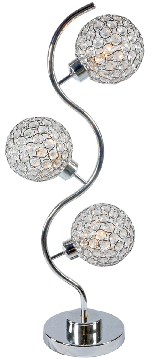 Elevate your decor with this striking table lamp, a true symphony of crystal and light. Designed to make a statement, this lamp features a graceful, swirling silhouette adorned with crystalline spheres that capture and refract light to dazzling effect. Its sleek, chrome finish adds a contemporary edge, making it an ideal accent for modern homes.Read More