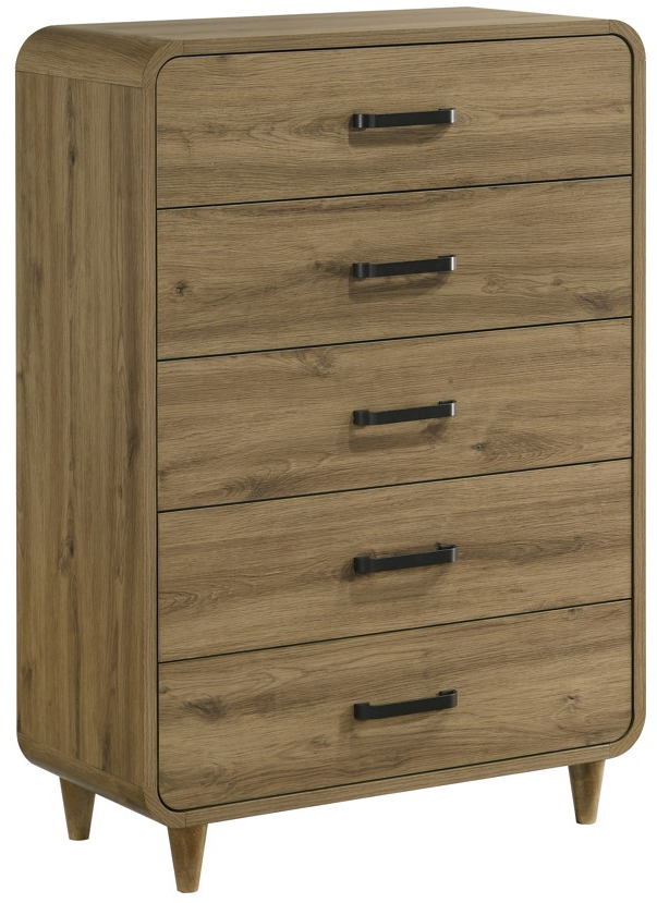 Redefine your bedroom with this elegant and contemporary furniture collection, designed to bring warmth and sophistication to any space. The rich wood tones and smooth finishes offer a natural, inviting charm, while the bed's sleek paneling enhances modern appeal.Read More