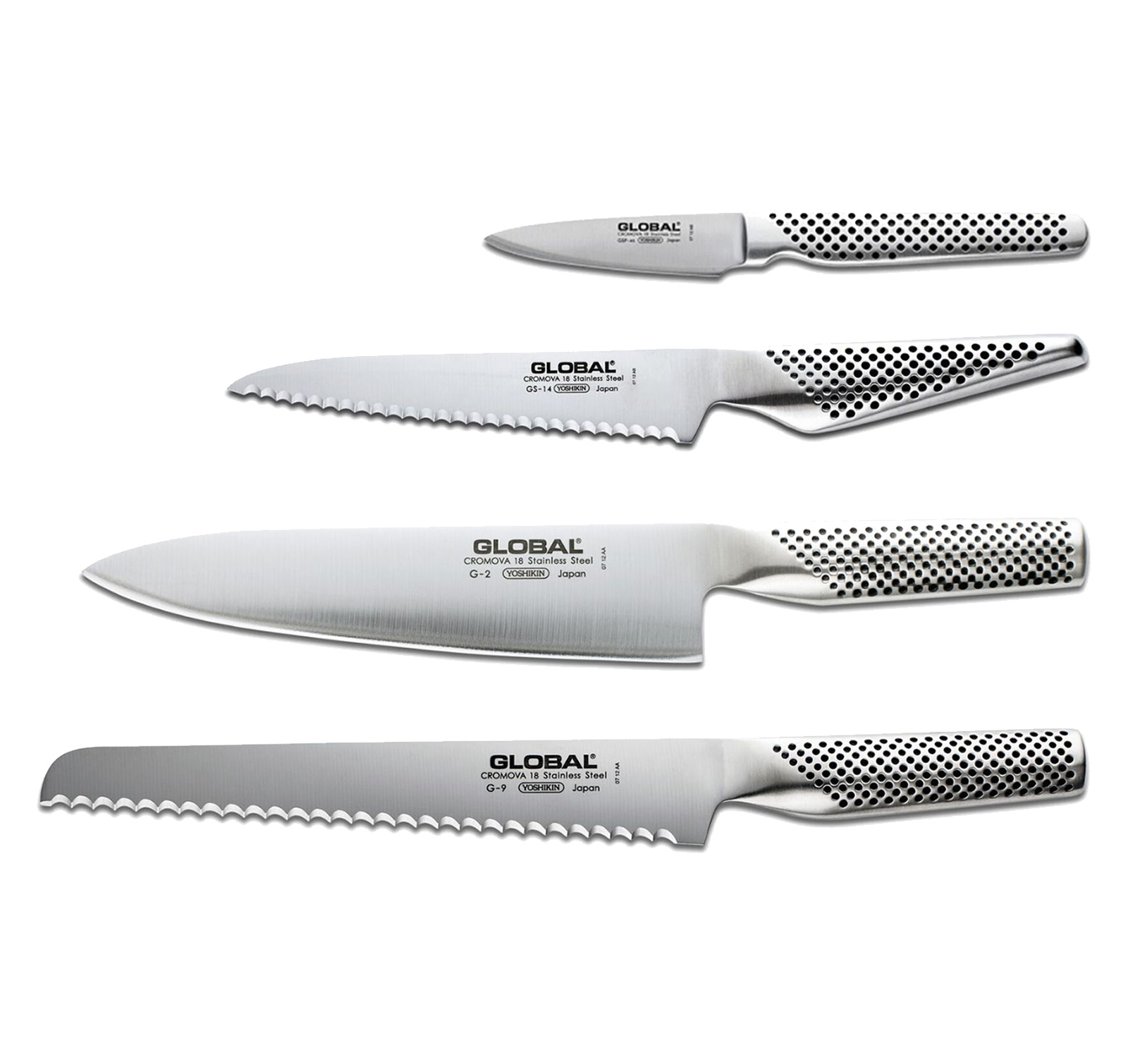 | Included In Set | 3” Paring Knife (GSF–46), 6” Serrated Utility Knife (GS–14), 8.5” Bread Knife (G–9), 8” Chef’s Knife (G–2) |