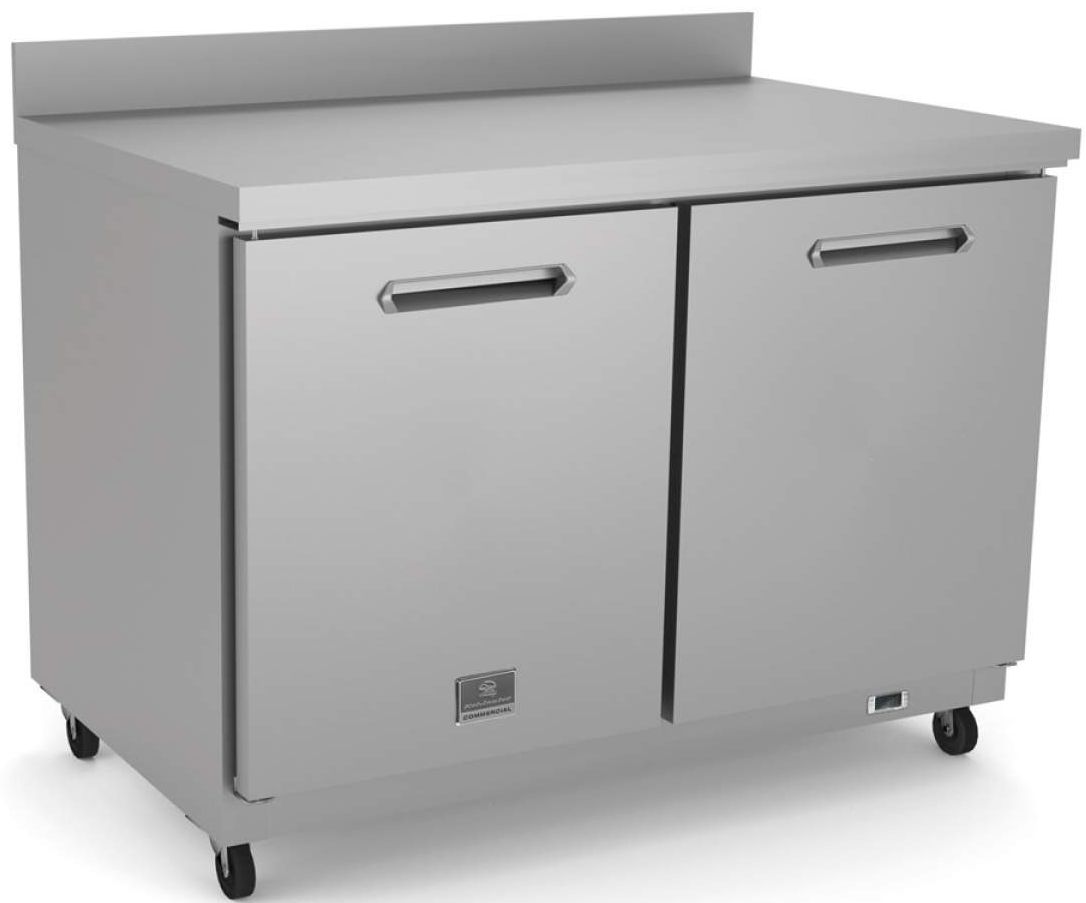 2-door freezer counter top with exterior back panel in aluminum, exterior bottom panel in galvanized steel, exterior side and top panel in 430 stainless steel; interior back, top and bottom panels in 304 stainless steel.Read More