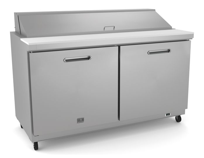 2-door sandwich/salad refrigerated preparation table. Exterior back panel in aluminum, exterior bottom panel in galvanized steel, side and top panels in 430 stainless steel; interior back, top panels and interior bottom panel in 304 stainless steel, worktop in 430 stainless steel.Read More