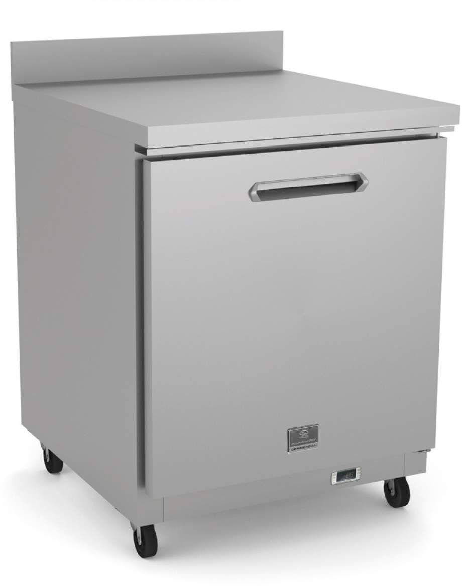 1-door freezer counter top with exterior back panel in aluminum, exterior bottom panel in galvanized steel, exterior side and top panel in 430 stainless steel; interior back, top and bottom panels in 304 stainless steel.Read More