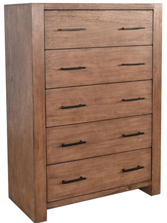 The Sunny Designs™ Kjirsten Buckskin Chest blends rustic style with modern functionality. Made from wire-brushed mahogany with a warm Buckskin finish, it features five spacious drawers for ample storage. A durable, stylish addition to any bedroom from the Kjirsten Collection.Read More