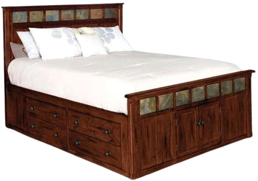 This Santa Fe bedroom set has been built with distressed mindi solids and veneers, full extension ball bearing drawer guides and genuine slate accents. Available as panel bed or bookcase storage.Read More