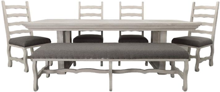 The bone gray dining room set from Andie Collection includes a well-designed dining table, bench and a set of coordinating chairs. This piece adds a touch of sophistication, providing a neutral backdrop that effortlessly complements various interior styles.Read More