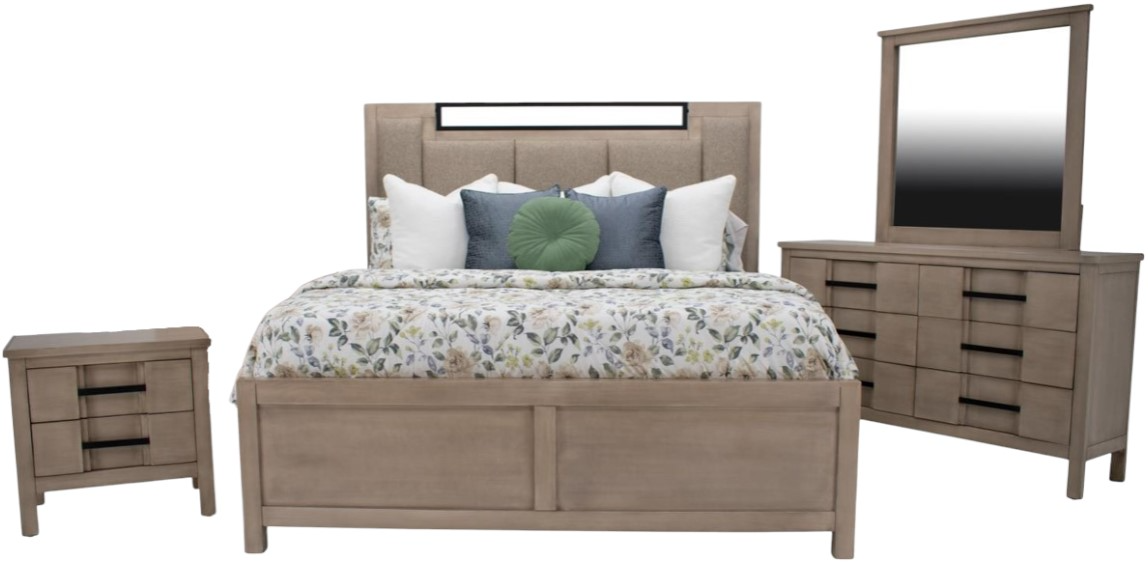 The Vintage Furniture Conway Queen Bedroom Set is a complete bedroom ensemble designed to offer both comfort and practicality. It typically includes a queen-sized bed frame along with coordinating pieces such as nightstands, a dresser, and a mirror. Built with durability in mind.Read More